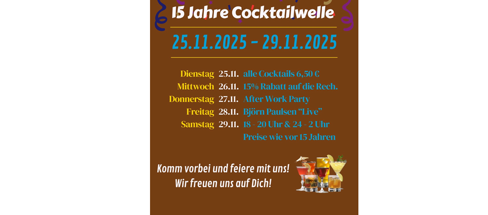 Beim SURFEN auf unserer Homepage wünschen wir viel Spaß und freuen uns, Euch bald persönlich in der Cocktailwelle begrüßen zu dürfen.
